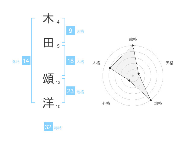 木田 頌洋さんを姓名の画数から五運を鑑定