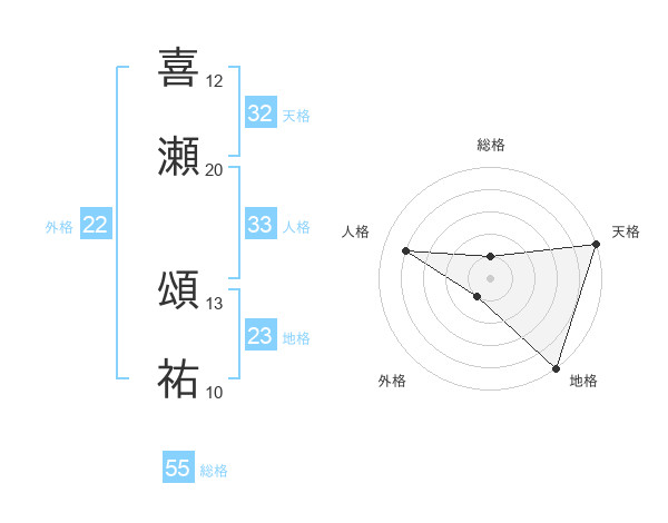 喜瀬 頌祐さんを姓名の画数から五運を鑑定