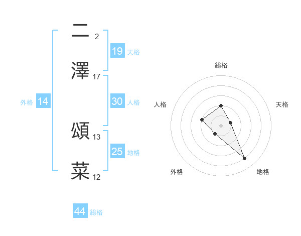 二澤 頌菜さんの総格は44画の2点!