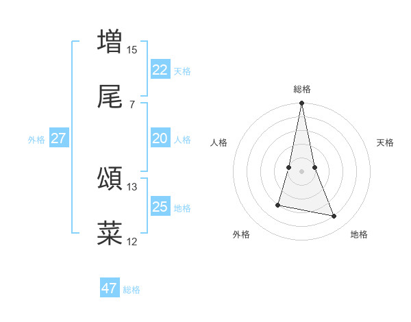 増尾 頌菜さんの総格は47画の5点!