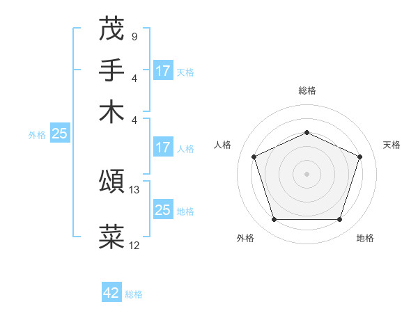 茂手木 頌菜さんを姓名の画数から五運を鑑定