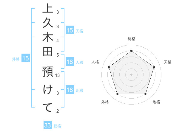 上久木田 預けてさんの天格は15画の4点!