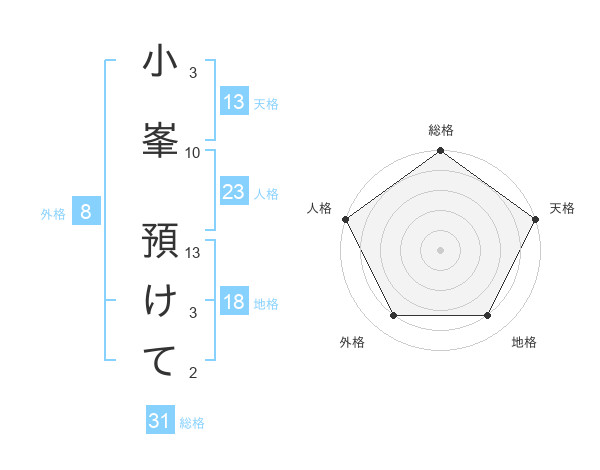 小峯 預けてさんの総格は31画の5点!