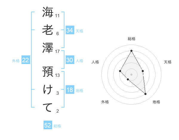 海老澤 預けてさんを姓名の画数から五運を鑑定