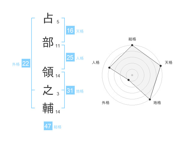 占部 領之輔さんの総格は47画の5点!
