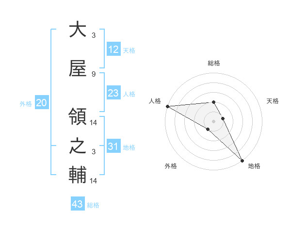 大屋 領之輔さんを姓名の画数から五運を鑑定