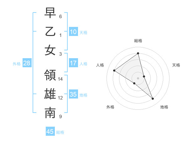 早乙女 領雄南さんの総格は45画の4点!