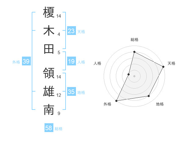 榎木田 領雄南さんを姓名の画数から五運を鑑定