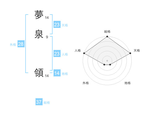 夢泉 領さんの天格は23画の5点!