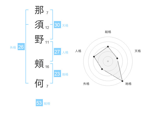 那須野 頬何さんを姓名の画数から五運を鑑定