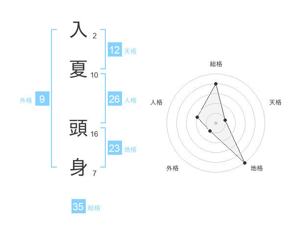 入夏 頭身さんの総格は35画の4点!