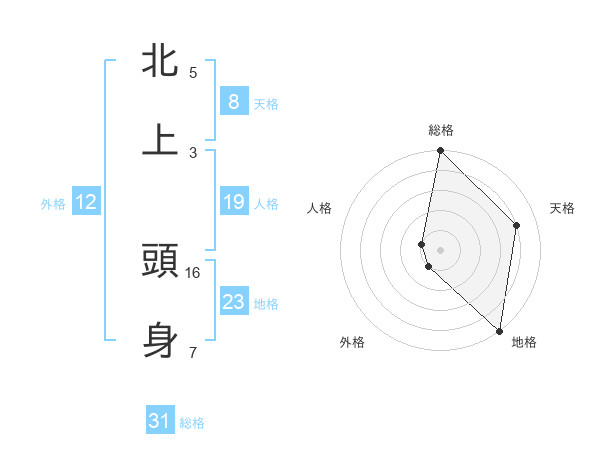 北上 頭身さんの総格は31画の5点!