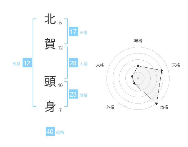 北賀 頭身さんの地格は23画の5点!
