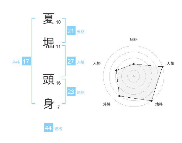 夏堀 頭身さんを姓名の画数から五運を鑑定