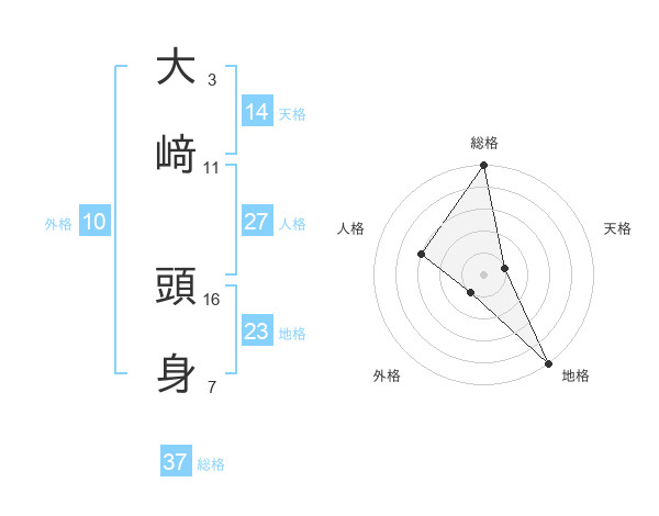 大﨑 頭身さんを姓名の画数から五運を鑑定