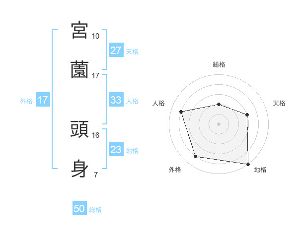 宮薗 頭身さんを姓名の画数から五運を鑑定
