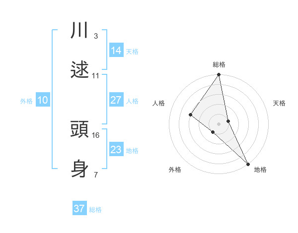 川逑 頭身さんの総格は37画の5点!
