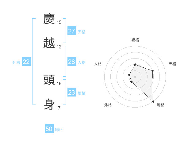 慶越 頭身さんの総格は50画の2点!