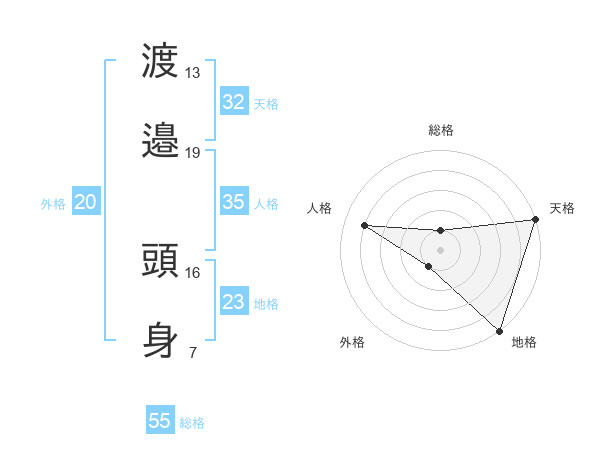渡邉 頭身さんを姓名の画数から五運を鑑定