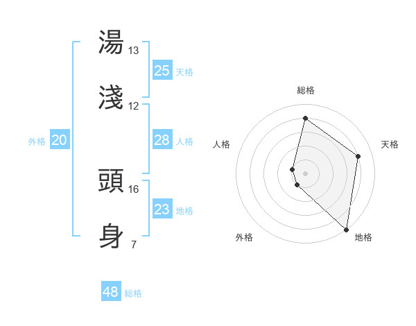 湯淺 頭身さんの総格は48画の4点!