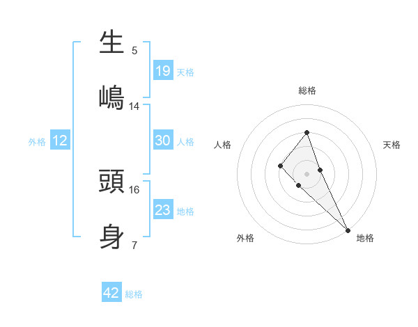 生嶋 頭身さんを姓名の画数から五運を鑑定