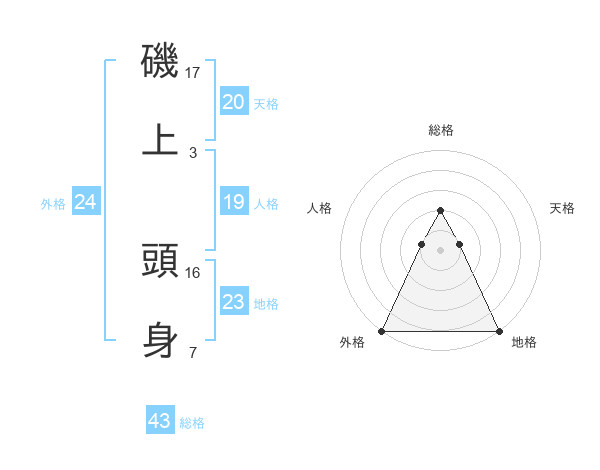 磯上 頭身さんを姓名の画数から五運を鑑定