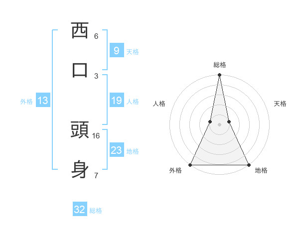 西口 頭身さんの総格は32画の5点!