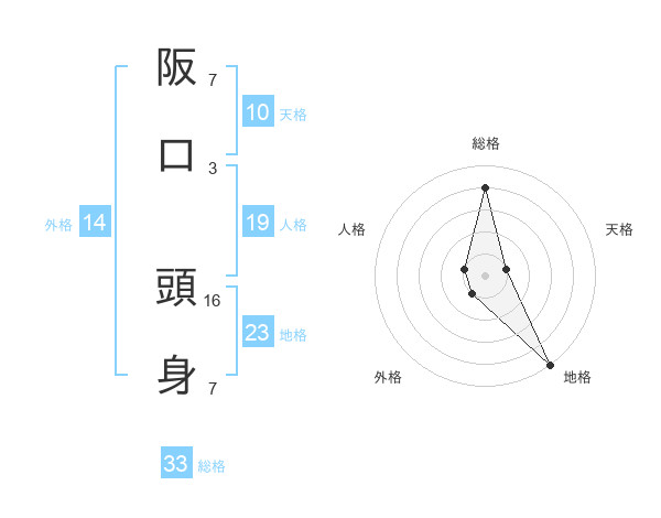 阪口 頭身さんの地格は23画の5点!