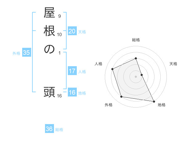 屋根の 頭さんを姓名の画数から五運を鑑定