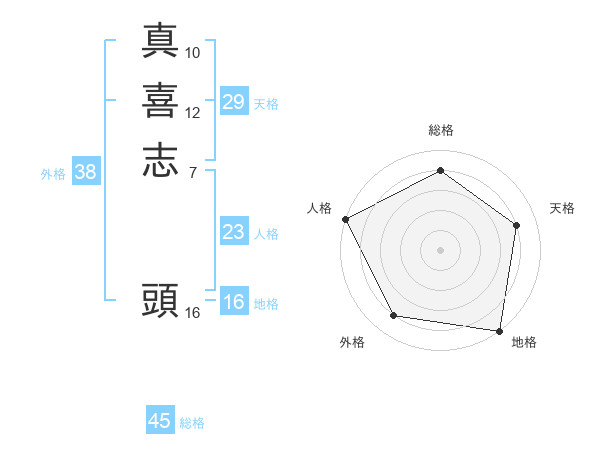 真喜志 頭さんの総格は45画の4点!