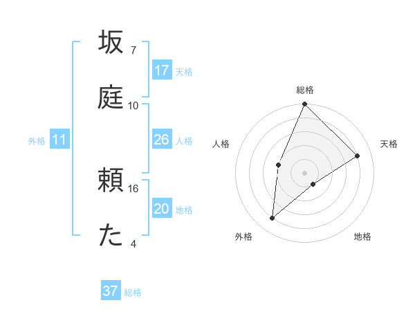 坂庭 頼たさんを姓名の画数から五運を鑑定