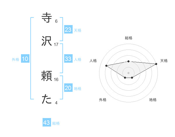 寺沢 頼たさんの天格は23画の5点!