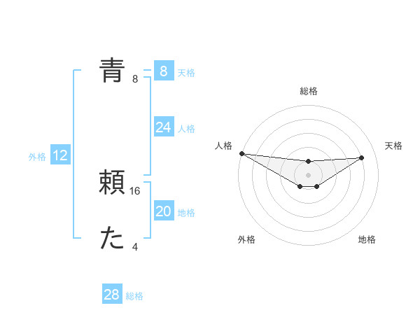 青 頼たさんの総格は28画の1点!