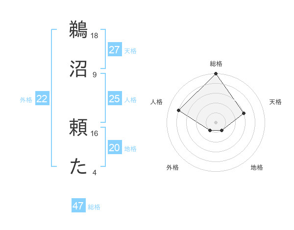 鵜沼 頼たさんの総格は47画の5点!