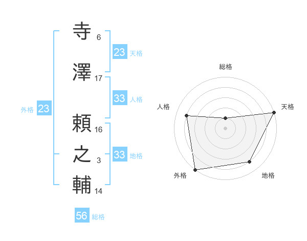 寺澤 頼之輔さんを姓名の画数から五運を鑑定