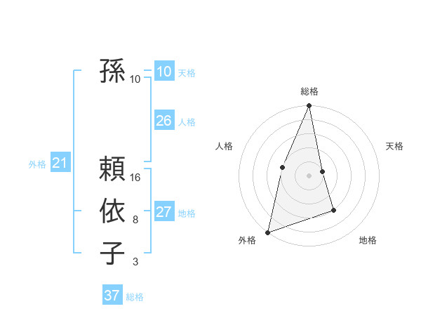 孫 頼依子さんの総格は37画の5点!