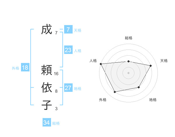 成 頼依子さんの地格は27画の3点!