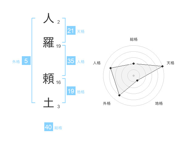 人羅 頼土さんの天格は21画の5点!