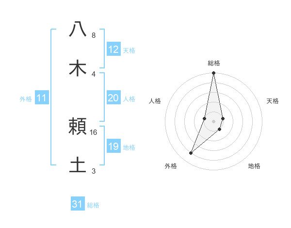 八木 頼土さんの総格は31画の5点!