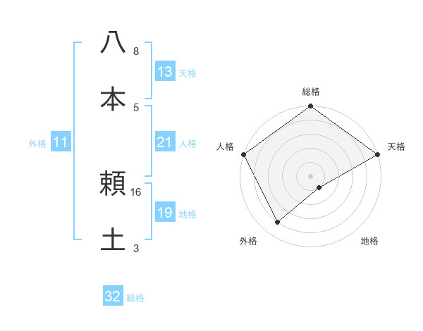 八本 頼土さんの天格は13画の5点!