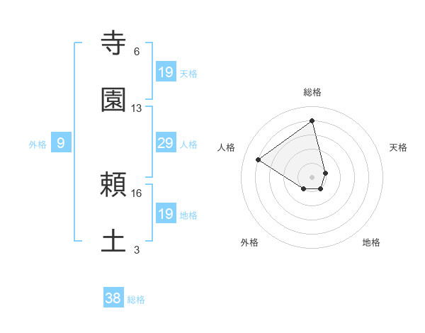 寺園 頼土さんの総格は38画の4点!