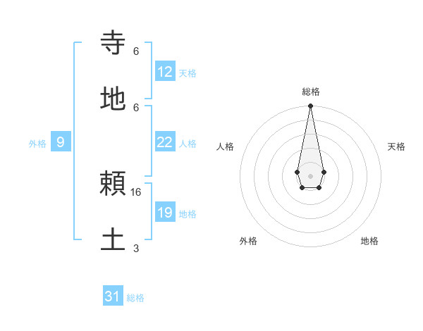 寺地 頼土さんを姓名の画数から五運を鑑定