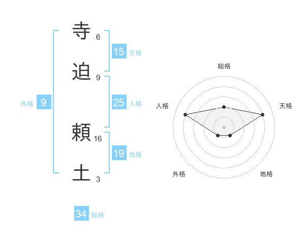 寺迫 頼土さんの天格は15画の4点!