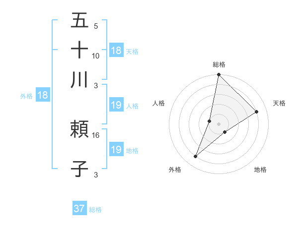 五十川 頼子さんの総格は37画の5点!