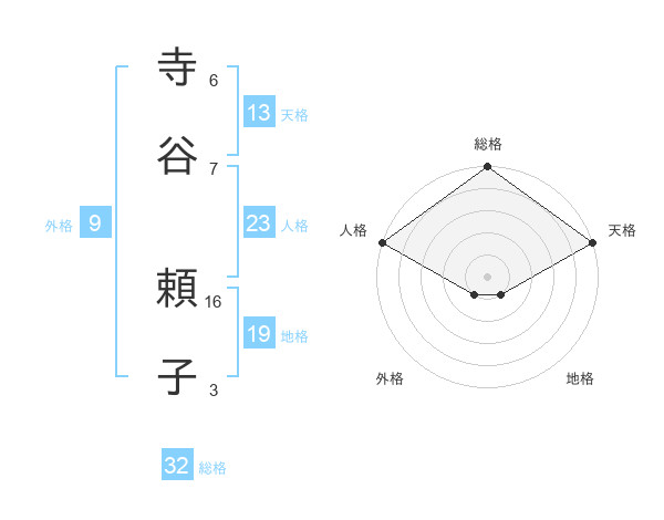 寺谷 頼子さんを姓名の画数から五運を鑑定