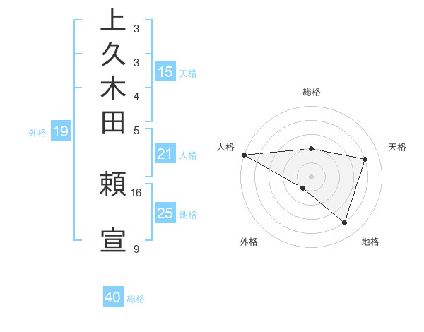 上久木田 頼宣さんを姓名の画数から五運を鑑定