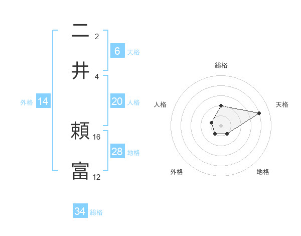 二井 頼富さんの総格は34画の2点!
