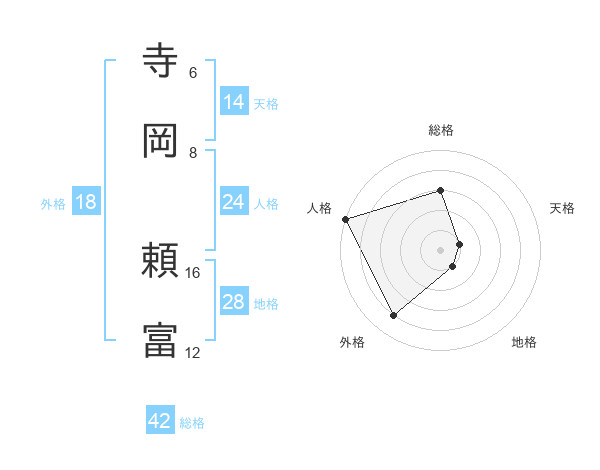 寺岡 頼富さんを姓名の画数から五運を鑑定