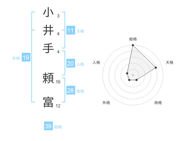 小井手 頼富さんを姓名の画数から五運を鑑定