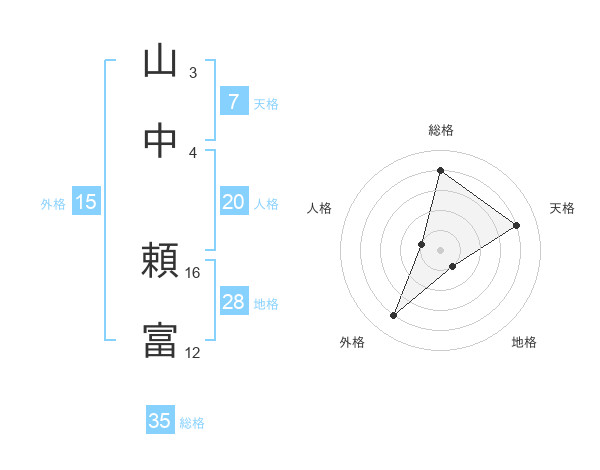 山中 頼富さんの総格は35画の4点!
